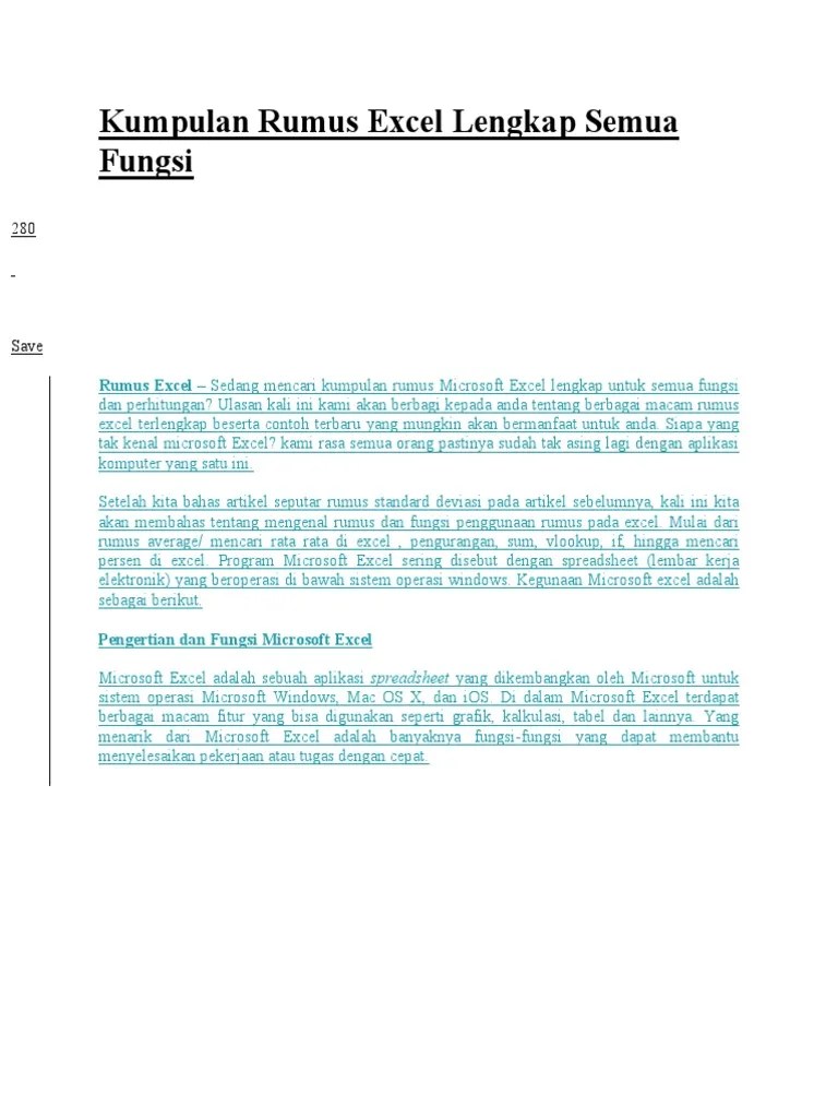 Rumus excel yang disajikan dalam aplikasi ini .